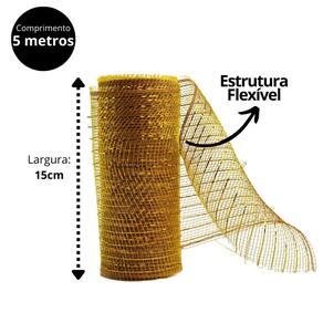 Kit 3 Telas Decorativa Fita Malha Tule Dourado Natal 15cmx5m
