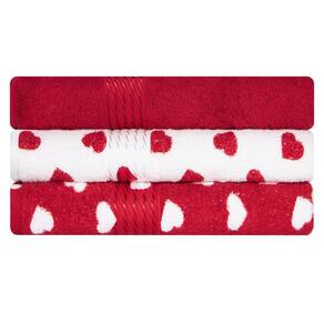Kit 3 Toalhas de Banho 100% Algodão Prisma Dohler - Branco | Vermelho