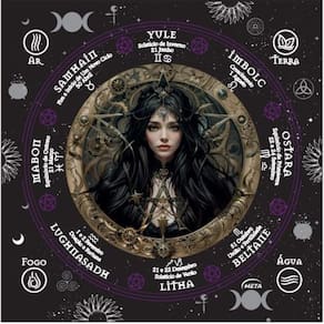 Kit 3 Toalhas Jogo Cartas Bruxa Wicca 70x70cm Estampadas Explore a magia com o nosso Kit de 3 Toalhas Estampadas de Cartas de Bruxa Wicca