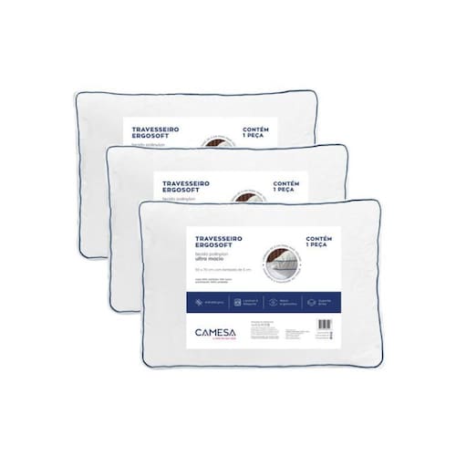 Kit 3 Travesseiros Camesa Ergosoft Hotel Ultra Macio 50x70cm Descrição Kit 3 Travesseiros Camesa Ergosoft Hotel Ultra Macio 50x70cm Travesseiro Ergosoft Hotel Ergonômico Ultra Macio Camesa