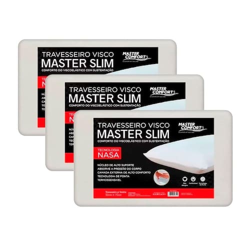Kit 3 Travesseiros NASA Conforto Tecnológico e Antialérgico O Travesseiro Master Viscoelástico possui uma tecnologia desenvolvida pela Nasa e é ideal para quem busca conforto e qualidade. Revestido com 100% de poliéster e espuma de poliuretano. Deixando o momento de dormir tranquilo e revigorante, levando bem-estar para suas noites de sono.
