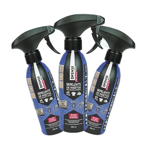 - Volume: 250ml - Tipo de aplicação: Spray para roupas e tecidos - Proteção: Mais de 12 horas - Indicado para: Gestantes, adultos e crianças de qualquer idade - Eficácia contra: Mosquitos (Zika, Dengue, Chikungunya, Malária, Febre Amarela), carrapatos, - ácaros, traças e outros insetos - Características adicionais: Não mancha, não deixa cheiro e seca rapidamente - Kit: 3 Unidades