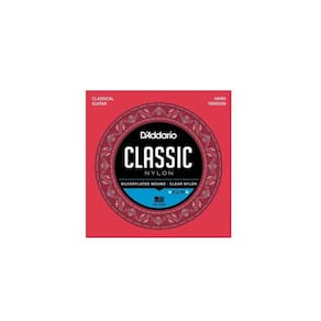Encordoamento de nylon daddario ej27h para violão é ótima para iniciantes e estudantes. O jogo contém 3 primas de nylon translúcido e 3 bordões com enrolamento de fios de cobre com banho de prata sobre uma base de naylon, proporcionando um timbre encorpado e duradouro.