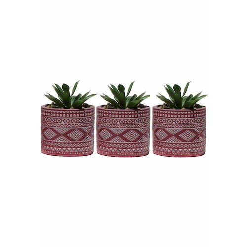 São 3 lindos vasinhos feitos em cimento, pintados na cor pink com plantinha de suculenta.