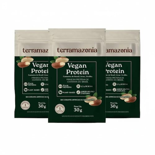 Kit 3 - descrição vegan protein é uma proteína vegetal que traz como inovação uma nova fonte de proteínas vegetais: a castanha-do-brasil. A nossa proteína apresenta um excelente perfil de aminoácidos, capazes de suprir o organismo de aminoácidos essenciais aqueles que não podem sintetizados pelo nosso organismo . E tem mais uma vantagem: possui um sabor leve e neutro, com quase nenhum sabor residual característico de outras proteínas veganas. Indicada para o público vegano ou para aqueles que tem intolerância ao leite e desejam adicionar uma fonte de proteína a sua dieta. Ativos naturais farinha de castanha-do-brasil: é obtida a partir da prensagem a frio das amêndoas da castanha do brasil bertholletia excelsa quando da extração do óleo de castanha. Apresenta-se rica em proteína e relativamente pobre em lipídeos e carboidratos. Pode ser considerado um resíduo da agroindústria do óleo de castanha e sua aplicação na composição de uma proteína vegana dar um uso nobre a este produto da amazônia. Apresenta um sabor leve e alto valor nutricional com excelente perfil no aminoacidograma. Proteína isolada de ervilha: é uma alternativa perfeita aos suplementos mais reconhecidos, como o whey e a caseína. Esse produto possui um perfil de aminoácidos ótimo para aqueles que desejam e ganhar massa muscular, podendo também ser consumido por veganos, celíacos e intolerantes a lactose. Proteína isolada de arroz: é rica em minerais e aminoácidos essenciais. Pode ser utilizada no pós-treino para estimular a hipertrofia ou para enriquecer qualquer outra refeição do dia, dando mais e aumentando o valor nutricional da dieta. Por ser hipoalergênica, a proteína de arroz pode ser Utilizado inclusive por pessoas que têm alergia ao leite e à proteína de soja, dois alimentos que normalmente causam alergias. Sugestões de uso preparar 1 porção 30g do produto antes do treino e após o treino ou conforme orientação do nutricionista ou médico. Dilua em água ou na sua bebida preferida, ou conforme orientação do . Ingredientes farinha desengordurada de castanha-do-brasil, proteina de arroz, proteina de ervilha, stevia, taumatina, goma xantana, goma guar, aroma natural de baunilha. Não contém glúten, não contém lactose. Marca: Não Informado