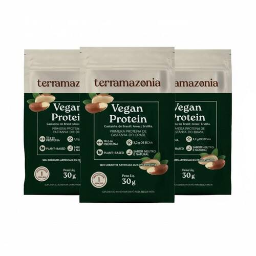 Kit 3 - descrição vegan protein é uma proteína vegetal que traz como inovação uma nova fonte de proteínas vegetais: a castanha-do-brasil. A nossa proteína apresenta um excelente perfil de aminoácidos, capazes de suprir o organismo de aminoácidos essenciais aqueles que não podem sintetizados pelo nosso organismo . E tem mais uma vantagem: possui um sabor leve e neutro, com quase nenhum sabor residual característico de outras proteínas veganas. Indicada para o público vegano ou para aqueles que tem intolerância ao leite e desejam adicionar uma fonte de proteína a sua dieta. Ativos naturais farinha de castanha-do-brasil: é obtida a partir da prensagem a frio das amêndoas da castanha do brasil bertholletia excelsa quando da extração do óleo de castanha. Apresenta-se rica em proteína e relativamente pobre em lipídeos e carboidratos. Pode ser considerado um resíduo da agroindústria do óleo de castanha e sua aplicação na composição de uma proteína vegana dar um uso nobre a este produto da amazônia. Apresenta um sabor leve e alto valor nutricional com excelente perfil no aminoacidograma. Proteína isolada de ervilha: é uma alternativa perfeita aos suplementos mais reconhecidos, como o whey e a caseína. Esse produto possui um perfil de aminoácidos ótimo para aqueles que desejam e ganhar massa muscular, podendo também ser consumido por veganos, celíacos e intolerantes a lactose. Proteína isolada de arroz: é rica em minerais e aminoácidos essenciais. Pode ser utilizada no pós-treino para estimular a hipertrofia ou para enriquecer qualquer outra refeição do dia, dando mais e aumentando o valor nutricional da dieta. Por ser hipoalergênica, a proteína de arroz pode ser Utilizado inclusive por pessoas que têm alergia ao leite e à proteína de soja, dois alimentos que normalmente causam alergias. Sugestões de uso preparar 1 porção 30g do produto antes do treino e após o treino ou conforme orientação do nutricionista ou médico. Dilua em água ou na sua bebida preferida, ou conforme orientação do . Ingredientes farinha desengordurada de castanha-do-brasil, proteina de arroz, proteina de ervilha, stevia, taumatina, goma xantana, goma guar, aroma natural de baunilha. Não contém glúten, não contém lactose. Marca: Não Informado Ean: 7908688886363