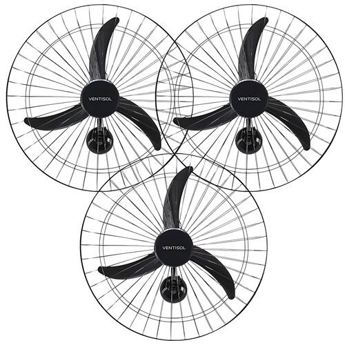 Kit 3 Ventiladores De Parede Ventisol Oscilante 60cm Premium 3 Pás 200W Ele é ideal para ambientes grandes e comerciais. Vai trazer o frescor e conforto que você precisa. É um parceiro para o ambiente comercial. Lojas, academias, oficinas, mercados e outros ambientes comerciais vão ficar muito mais frescos e confortáveis com essa ventilação.Características Principais:* Classe A Procel – Em consumo de energia* Chave de controle eletrônica para parede – Com ajuste fino de velocidade* Oscilante – Oscilação horizontal automática* Motor potente de 200w – Alta capacidade de ventilação* Grades em aço – Mais segurança e durabilidade* Bivolt Seletivo – Com chave seletora, escolha entre 127v e 220v* Pintura Eletrostática – Grade e haste com pintura em alta resistência* Inclinação regulável – Com ajuste manual* Fusível Térmico – Dispositivo de proteção que garante a segurança do motorEspecificações:- Potência – 200W- RPM: 1400- Grade: 610mm- Hélice: 521mm- Peso Bruto: 3,500 kg- Peso Líquido: 3,000 kgCxLxA – mm: 610x190x610Fabricação: NacionalItens Incluso:3 Ventiladores De Parede Ventisol Oscilante 60cm Premium 3 Pás 200W*Imagens Ilustrativas**Garantia: 12 Meses*