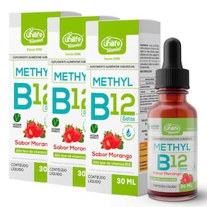 A Vitamina B12 Methyl em Gotas Unilife Sabor Morango 30 ml é um suplemento alimentar desenvolvido com ingredientes cuidadosamente selecionados para garantir qualidade e pureza. O produto contém metilcobalamina Vitamina B12 e água purificada, proporcionando uma opção prática para complementar a alimentação diária. Ingredientes Água purificada, metilcobalamina Vitamina B12 , agente de massa glicerina vegetal, acidulante ácido cítrico, regulador de acidez citrato de sódio, aroma idêntico ao natural de morango e conservantes sorbato de potássio e benzoato de sódio Informações adicionais Não contém glúten Produto vegano Modo de uso Sugere-se a ingestão de 1 gota ao dia, colocada sob a língua e ingerida em jejum. Agite bem antes de usar. Refrigerar após aberto. Informação nutricional Cada porção de 0,5 ml 1 gota contém 2,4 mcg de Vitamina B12, correspondendo a 100% da necessidade diária recomendada. Armazenamento Manter em local seco e fresco, ao abrigo da luz e umidade. Após aberto, consumir dentro do prazo de validade indicado na embalagem. Marca: Não Informado