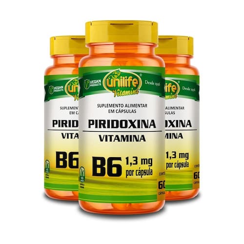 Kit 3 Vitamina B6 Piridoxina Unilife 60 Cápsulas