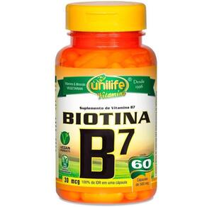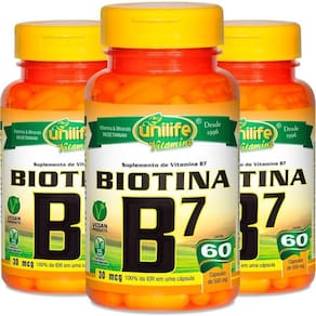 A vitamina B7 Biotina da Unilife faz parte do complexo de Vitamina B, todas vitaminas do complexo B não são produzidas pelo corpo, ou seja precisamos adquirir ela por dietas, entretanto a Vitamina B7 está presente na maioria dos alimentos, mas ela é umas das mais ausentes em todos os organismo, isso acontece devido ela ser muito frágil, e no seu processamento pode ser destruída com muita facilidade e assim perdemos todos seus nutrientes, o que nos resta é suplementar a Vitamina B7 Biotina para obter a quantidade exata sem nenhuma preocupação, pois a carência de B7 pode afetar diretamente o sistema nervoso, coração, e a função digestiva.