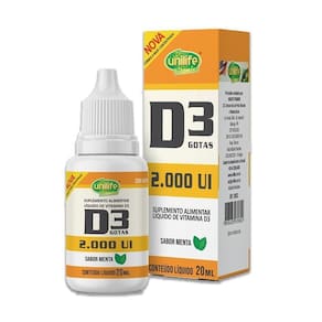 VITAMINA D3 (líquido) Unilife Vitamins Desenvolvido a partir de vitamina D3, o produto é livre de glúten e está disponível na versão: 20ml.
