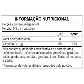 De grande importância para o organismo, a Vitamina D atua na formação de dentes e ossos, no funcionamento muscular e Sistema Imune, na manutenção dos níveis de Cálcio no organismo e ajuda na divisão celular, dentre outras funções. Classificação: suplemento alimentar de Colecalciferol em cápsulas Ingerir 1 uma cápsula por dia, preferencialmente antes das principais refeições. Recomendação de uso: 19 dezenove anos ou acima. Marca: Não Informado