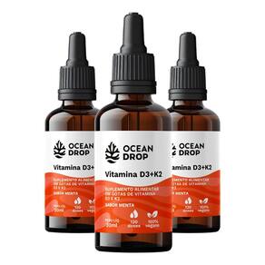 Kit 3 Vitamina D3 + K2 em Gotas Ocean Drop 30ml Sabor Menta Vitamina D3 + K2 em Gotas Ocean Drop 30ml Sabor Menta é um suplemento em gotas que combina as vitaminas D3 e K2 em uma formulação prática e saborosa. Ideal para quem busca complementar a dieta com esses nutrientes essenciais. A versão em gotas facilita a dosagem, oferecendo uma opção conveniente e eficaz para o uso diário. Ingredientes: Vitamina D3 Vitamina K2 Aromatizante natural de menta Sugestão de uso: Consumir a dosagem recomendada ao dia, ou conforme orientação. Informações importantes: Produto vegano, livre de glúten e derivados de origem animal. Não recomendado para gestantes, lactantes ou crianças. Este produto não é um . Marca: Não Informado
