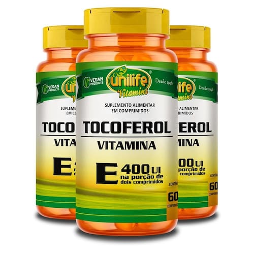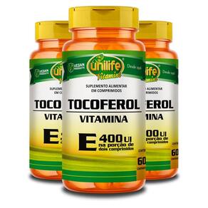 Vitamina E Tocoferol Unilife 60 cápsulas 100% da Ingestão Diária Recomendada em Apenas 1 Cápsula Conhecido também como Tocoferol, o nutriente é uma vitamina lipossolúvel, responsável por acelerar a cicatrização de ferimentos, proteger de doenças crônicas como Parkinson, Alzheimer, câncer e problemas cardiovasculares, ajudar na fertilidade feminina e masculina e prevenir o dano oxidativo das células, aumentando a longevidade e fortalecendo o sistema imunológico. Além disso, melhora a absorção da vitamina A no organismo. Benefícios do uso da Vitamina E em cápsulas: - 100% da Ingestão Diária em 1 cápsula - Previne o envelhecimento celular - Ajuda a acelerar a cicatrização de ferimentos - Previne doenças crônicas como Parkinson, Alzheimer, entre outras - Potente antioxidante Marca: Não Informado