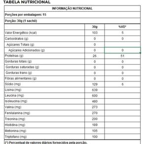 Isolate protein sachês O isolate protein em sachês da new millen é um suplemento alimentar em pó desenvolvido com proteína de alta qualidade, idealizado para quem busca suporte nutricional eficiente para a construção muscular e a recuperação pós-treino. Formulado com proteínas de origem bovina, aminoácidos essenciais e um sabor inconfundível de chocolate, o isolate protein oferece praticidade em sachês de 30g e alta absorção para melhor desempenho e saúde muscular. Composição e ingredientes - aminoácidos: acetato de l-lisina, l-leucina, l-isoleucina, l-valina, l-fenilalanina, l-treonina, l-histidina, l-metionina, l-triptofano - cacau em pó - aroma idêntico ao natural - espessante: goma xantana - edulcorante: sucralose - antiumectante: dióxido de silício - não contém glúten. Benefícios - maior biodisponibilidade e eficiência na recuperação muscular. - com aminoácidos essenciais: auxilia na construção e manutenção dos tecidos musculares. - prático e saboroso: sachês individuais, ideais para qualquer momento do dia. Sugestão de uso Diluir 1 sachê 30g em 200ml de água ou bebida de sua preferência. Consumir uma vez ao dia, ou conforme orientação .
