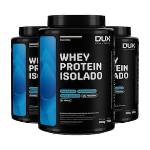 Kit 3 Whey Protein Isolado Dux Baunilha 900g Modo de Uso: Adicione 29 g 1 dosador de Whey Protein Isolado em 250 ml de água. Misture bem usando uma coqueteleira até obter uma mistura homogênea. Consuma imediatamente após o preparo. Ingredientes: Whey Protein Isolado Recomendações: Ideal para ser consumido pré/pós-treino, ao acordar, entre as refeições, ou conforme orientação do nutricionista. Prevenções: Não deve ser como substituto de uma alimentação equilibrada. Mantenha fora do alcance de crianças. Consulte um de saúde antes de iniciar qualquer suplemento, especialmente se tiver condições de saúde pré-existentes. Modo de Conservação: Armazene em local seco e fresco, longe da luz direta e da umidade. Mantenha o produto bem fechado para preservar suas propriedades. Marca: Não Informado
