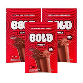 Kit 3 Sache Whey Chocolate ao leite 30g - Bold O Whey Chocolate Bold combina intensidade de sabor e cremosidade em cada porção. Com 22g de proteína por dose, é perfeito para recuperação pós-treino, ganho de massa magra ou como complemento nutricional em qualquer hora do dia. Destaques do Produto - 22g de proteína por porção 30g - Blend de whey concentrado, isolado e hidrolisado - Sabor marcante de chocolate - Textura cremosa e versatilidade no preparo - Ideal para shakes, sobremesas e receitas Sugestão de Consumo Diluir 30g 1 porção em 100ml de água ou leite. Pode ser em receitas como brownies, panquecas e vitaminas. Ingredientes Proteína do soro do leite concentrada, isolada e hidrolisada, cacau em pó, aromatizantes, espessantes goma guar e goma xantana, edulcorante sucralose. Alérgicos: contém derivados de leite. Pode conter amêndoa, amendoim, avelãs, castanha-de-caju, castanha-do-pará e soja. Contém lactose e glúten. Marca: Não Informado