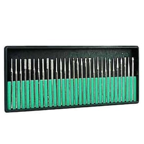 Contém: - 1 Kit com 30 Brocas Diamantadas - Profissional - Kit com 30 brocas profissionais para polimento, limpeza etc. Com encaixe padrão, servindo para a maioria das lixas, lixadeiras e motor profissional.