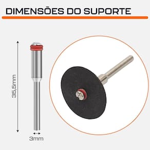 - Marca: Dremax - Kit com 30 discos de Corte + 2 Hastes 3mm - Diâmetro do disco: 24mm - Velocidade Máxima: máxima: 35.000rpm - Material: Óxido de Alumínio - Espessura do corpo do disco: 0,8mm - Diâmetro do furo do disco: 2mm - Indicado para cortes em metais como aço, ferro, bronze, cobre, latão, alumínio. Também pode ser utilizado em plástico, acrílico e PVC - Para uso com micro retíficas Dremel, Black Decker, Charbs, Einhell, e qualquer outra marca - Uso hobby ou profissional - Peso: 90 gramas - Garantia: 90 dias contra defeitos de fabricação