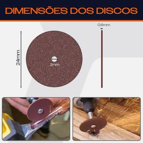 Jogo com 30 Discos de Corte 24mm x 0.6mm para Micro Retíficas Mini Furadeiras Dremax - Marca: Dremax - Kit com 30 discos de Corte - Acompanha 1 Suporte Haste 3mm - Diâmetro do disco: 24mm - Velocidade Máxima: máxima: 35.000rpm - Material: Óxido de Alumínio - Espessura do corpo do disco: 0,6mm - Diâmetro do furo do disco: 2mm - Indicado para cortes em metais como aço, ferro, bronze, cobre, latão, alumínio. Também pode ser utilizado em plástico, acrílico e PVC - Para uso com micro retíficas Dremel, Black Decker, Charbs, Einhell, e qualquer outra marca - Uso hobby ou - Peso: 90 gramas - : 90 dias contra defeitos de fabricação A DREMAX é a primeira e única marca brasileira dedicada exclusivamente às micro retíficas, acessórios e acoplamentos para esta indispensável ferramenta. Seja para trabalhos de precisão, artesanato, modelagem ou reparos, a DREMAX tem o produto certo para você. Marca: Dremax Ean: 7734625992169