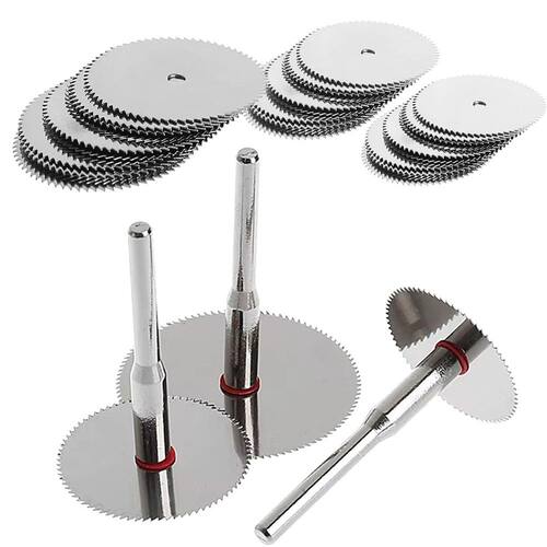 Kit 30 Discos Lâmina de Serra 22mm a 32mm Aço Inox com 3 Hastes 3mm para Micro Retíficas Dremax - Marca: Dremax - 10 Discos de 32mm - 10 Discos de 25mm - 10 Discos de 22mm - 3 Hastes de 3mm - Material: Aço Inox - Espessura aproximada: 0,2mm - Número de dentes: 80 - Diâmetro do furo: 2mm - A lâmina de serra circular é feita de aço inoxidável de alta qualidade, durável, com baixo desgaste e boa resistência ao calor - A tecnologia antivibração reduz o ruído e prolonga a vida útil do corte - Ideal para o corte de materiais duros como madeira, plásticos, laminados, alumínio, etc - Indicado para uso com micro retíficas de qualquer marca Dremel, Dremax, Charbs, Black+Decker, Titanium, etc - Adequado para uso em Carpintaria e artesanato - Para sua segurança, aperte bem o parafuso da haste - Velocidade máxima de operação: 20.000 rpm - : 90 dias A DREMAX é a primeira e única marca brasileira dedicada exclusivamente às micro retíficas, acessórios e acoplamentos para esta indispensável ferramenta. Seja para trabalhos de precisão, artesanato, modelagem ou reparos, a DREMAX tem o produto certo para você. Marca: Não Informado