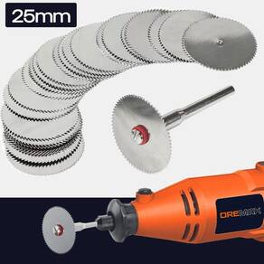 Kit 30 Discos Lâmina de Serra 25mm Aço Inox com 2 Hastes 3mm para Micro Retíficas Dremax - Marca: Dremax - 30 lâminas / Discos de 25mm - 2 Hastes de 3mm - Material: Aço Inox - Espessura aproximada: 0,2mm - Número de dentes: 80 - Diâmetro do furo: 2mm - A lâmina de serra circular é feita de aço inoxidável de alta qualidade, durável, com baixo desgaste e boa resistência ao calor - A tecnologia antivibração reduz o ruído e prolonga a vida útil do corte - Ideal para o corte de materiais duros como madeira, plásticos, laminados, alumínio, etc - Indicado para uso com micro retíficas de qualquer marca Dremel, Dremax, Charbs, Black+Decker, Titanium, etc - Adequado para uso em Carpintaria e artesanato - Para sua segurança, aperte bem o parafuso da haste - Velocidade máxima de operação: 20.000 rpm - : 90 dias A DREMAX é a primeira e única marca brasileira dedicada exclusivamente às micro retíficas, acessórios e acoplamentos para esta indispensável ferramenta. Seja para trabalhos de precisão, artesanato, modelagem ou reparos, a DREMAX tem o produto certo para você. Marca: Não Informado