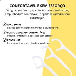 Cada haste possui fio dental resistente e fácil de usar, permitindo a limpeza entre os dentes de forma precisa, removendo restos de alimentos e auxiliando na prevenção de cáries e mau hálito.