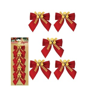 6 Kit Com 5 Laços Decorativo Vermelho E Dourado 9cm;