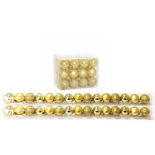 Kit 30 Mini Bolas De Natal Decoradas Mista Dourada 3cm