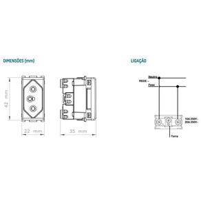 O Módulo Tomada 2P+T Tramontina 10 A 250 V Branco é versátil e muito prático. Produzido em termoplástico antichama, ele possui 2P+T e 10 A, além de apresentar 250 V. Na cor branca, pode ser substituído por outras cores presentes na linha, assim como ser utilizado com outras placas de diferentes linhas da Tramontina. Possui ainda acabamento brilho que não retém poeira. É um modelo largo que garante um contato perfeito com a rede elétrica, já que os condutores elétricos são fixados aos bornes e travados por parafusos. Uma peça prática e essencial para deixar seu projeto ainda melhor