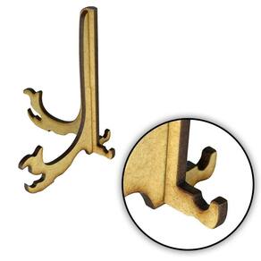 Suporte feito com madeira de mdf indicado para segurar peças de pequeno porte, como azulejos, bordados, plaquinhas, objetos desse tipo de preferência quadrado ou redondo, de medidas iguais, para garantir que a peça será sustentada sem correr o risco de cair.