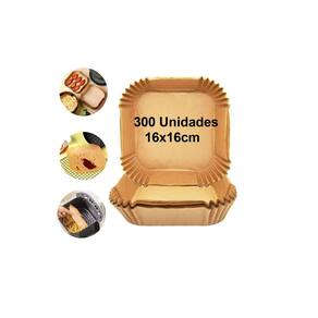 Quantidade : 300 unidades (6 pacotes de 50). Dimensões : Diâmetro superior 16 cm, diâmetro do fundo 16 cm, altura 4,5 cm. Compatibilidade : Airfryer, forno elétrico e micro-ondas.