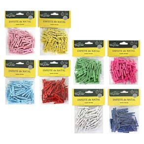 O conjunto conta com mini prendedores com cores vibrantes, proporciona diversas combinações de decorações para sua festa de natal.