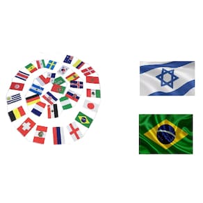 Graça e paz somos da maranata shofar vendemos shofar, talits, candelabros menorah, kipá, chaveiros, castiçais, torah, além de diversos itens importados de israel. Tenha certeza que você receberá o produto igual ao que está na foto, pois não fazemos . Drescição do produto: 01 Varal de bandeiras de 32 países 32 países - 20x28cm - aprox.10 metros Para decorar seu evento, festa das missões, escola, bar, pub, comércio, aniversários, sua empresa, etc Excelente varal com 32 bandeiras de diferentes países, pronta para o uso, só pendurar onde quiser. Material impresso em tecido de poliéster Medida da bandeira: 20x28cm Comprimento do varal: aprox. 10m + 01 Bandeira do brasil grande em poliéster tamanho 1,5m x 90cm 01 Bandeira de israel grande em poliéster tamanho 1,5m x 90cm Despacho imediato. Marca: Não Informado