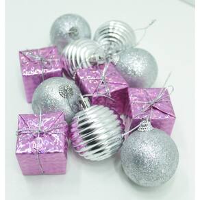 Transforme a sua árvore de Natal em um verdadeiro espetáculo de magia e beleza com nosso exclusivo Kit de Pingentes de Natal! Feitos com materiais de alta qualidade, Acabamento brilhante Rosa e Prata, 11 pingentes artesanais com designs únicos