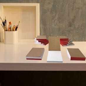 - Kit com 35 Blocos de anotações com 50 folhas, totalizando 1750 folhas - Medidas 10x7cm - Sem impressão, folhas brancas - Blocado com cola vermelha - Capa e Contra Capa em Kraft - Não possui carbono