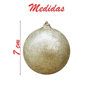 Kit 36 Bolas Enfeite Natalino Árvore Natal Glitter Dourado 70mm