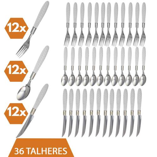 Itens Inclusos: 36 Talheres Colher, Garfo e Faca com o cabo Branco
