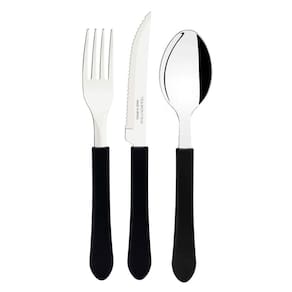 Kit restaurante 36 talheres tramontina 12 garfos + 12 facas + 12 colheres ========== sobre o produto ========== O kit restaurante 12 garfos + 12 facas + 12 colheres tramontina é ideal para quem deseja elevar a qualidade e a apresentação de suas refeições. Composto por 12 garfos, 12 facas e 12 colheres, este conjunto é perfeito para compor sua mesa com elegância e praticidade. Feitos de aço inoxidável de alta durabilidade, os talheres oferecem resistência à corrosão e um desempenho superior. O design ergonômico e moderno dos cabos proporciona um manuseio confortável, tornando este kit uma excelente escolha para uso doméstico ou . ========== especificações ========== Conjunto composto por 12 garfos, 12 facas e 12 colheres. Cabos ergonômicos para um manuseio confortável. Design moderno e elegante, ideal para qualquer ocasião. ========== ficha técnica ========== Unidades: 12 garfos / 12 facas / 12 colheres Comprimento dos garfos: 18,5cm Comprimento dos colheres: 18,5cm Comprimento das facas: 23 cm Material: aço inoxidável e polipropileno Marca: tramontina : 3 meses Estamos online para quaisquer dúvidas, Agradecemos e aguardamos o seu pedido. P: os talheres são resistentes à corrosão R: sim, todos os talheres são feitos de aço inoxidável, o que garante alta resistência à corrosão e durabilidade. P: o kit pode ser lavado na máquina de lavar louça R: sim, todos os talheres do kit podem ser lavados na máquina de lavar louça, mas recomendamos lavar à mão para prolongar a vida útil dos cabos. P: o kit é adequado para R: sim, o kit é ideal tanto para uso doméstico quanto , oferecendo qualidade e durabilidade para diversas situações. P: o produto é novo ou Marca: Não Informado