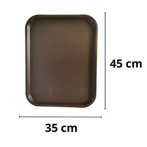 Bandeja Restaurante Self Service Fast Food 45 x 35 36 UNIDADES A bandeja LT23416 é ideal para restaurantes self service, fast food, refeitórios, padarias, hospitais e hotéis. Se o objetivo for utilizá-la em um restaurante por Kg ou para também servir refeições além de lanches, a LT23416 irá acomodar perfeitamente um prato comum, talheres, guardanapos e um copo. Além disso, possui bordas elevadas para evitar derramamentos indesejados e manter a comida no lugar, evitando possíveis inconvenientes. ESPECIFICAÇÕES: Marca: Todia Dia Modelo: LT23416 Cor: Marrom Material: Plástico Forma: Retangular Dimensões: 45 x 35 Peso:0,279 Kg A limpeza também é rápida e simples, graças ao material resistente a manchas e fácil de higienizar. de 7 dias após o recebimento da compra Marca: Não Informado