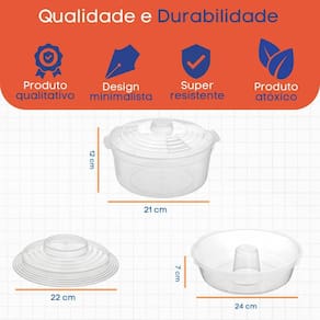 Kit 3peças Forma com Tampa Protetora e Panela de Micro-ondas Brand SANTANA Marca SANTANA Base-material-type PLASTICO Simplifique sua rotina na cozinha com nosso Kit Panela de Arroz, Forma de Pudim e Tampa Protetora de Alimentos para Micro-ondas Este kit versátil é tudo o que você precisa para preparar refeições deliciosas de forma rápida e prática, enquanto mantém a segurança e a qualidade dos alimentos. Fabricado com materiais livres de BPA, nosso kit garante a saúde da sua família, proporcionando paz de espírito durante o preparo e o armazenamento dos alimentos. Com a panela de arroz, você pode cozinhar arroz soltinho e saboroso em questão de minutos, enquanto a forma de pudim permite preparar sobremesas irresistíveis de maneira uniforme e fácil. E para garantir que seus alimentos permaneçam frescos por mais tempo, a tampa protetora de alimentos para micro-ondas é o complemento ideal, evitando respingos e preservando o sabor.Especificações do produtoMarca: SantanaModelo: Kit cozinhaDimensões Forma AxLxC : 24X6,5CMDimensões Panela AxLxC : 26X6CMDimensões Tampa Protetora AxLxC : 26X6CMPeso: 500gCores: transparenteItens Inclusos: 1- Forma pudim; 1-Panela arroz; 1- Tampa protetora; UTILIZAÍ DISTRIBUIDORAA Utilizai foi criada para facilitar o dia a dia de seus clientes. Estamos há 27 anos no mercado e acreditamos que um mundo melhor começa pela nossa casa e queremos fazer parte de cada bom momento do seu dia a dia. Prezando pelo atendimento personalizado, humanizado, buscando excelência na prestação dos serviços com qualidade, entrega rápida, e preços competitivos e produtos com . Marca: Não Informado Ean: 9876543221292