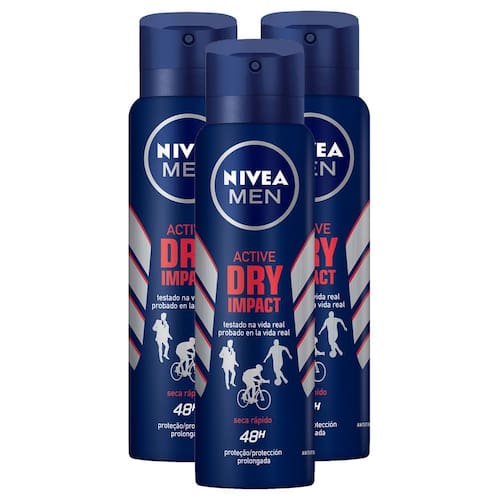 Desodorante Nivea Men Aerosol Dry Impact O que é? NIVEA MEN Desodorante Antitranspirante Aerossol Active Dry Impact é um desodorante masculino desenvolvido para oferecer proteção duradoura contra o suor e mau odor. Ele garante sensação de pele seca por até 72 horas, além de ser dermatologicamente testado para oferecer conforto e proteção para a pele. Para que serve? Regula a transpiração excessiva, combatendo o suor e os odores, ao mesmo tempo que proporciona proteção antibacteriana e 0% de álcool. Sua fórmula é ideal para quem busca conforto para o uso diário. Benefícios e diferenciais: -Sensação confortável e seca - Não contém álcool etílico - Proteção antibacteriana - 72h de proteção - Dermatologicamente testado - NIVEA MEN Desodorante Antitranspirante Aerossol Active Dry Impact oferece proteção eficaz por 72 horas contra suor e mau odor, proporcionando sensação de pele seca e confortável. Dermatologicamente testado, é ideal para todos os tipos de pele. ? MODO DE USO Aplicar a 15 cm de distância das axilas. Espere secar antes de se vestir. Em caso de funcionamento anormal da válvula, vire o frasco para baixo e agite bem. PREOCAUÇÕES Usar somente nas axilas. Não usar se a pele estiver irritada ou lesionada. Caso ocorra irritação e/ou prurido no local da aplicação, suspender o uso imediatamente e procurar orientação médica. Evite a inalação deste produto. Proteger os olhos durante a aplicação. Perigo: Aerossol extremamente inflamável. Recipiente sob pressão: risco de explosão sob a ação do calor. Manter afastado do calor, superfícies quentes, faísca, chama aberta e outras fontes de ignição. Não fumar. Não pulverizar perto do fogo ou outra fonte de ignição. Não perfurar, nem incinerar, nem queimar, mesmo após utilização. Manter ao abrigo da luz solar. Não expor ao sol nem a temperaturas superiores a 50°C. Manter fora do alcance de crianças. Somente a embalagem vazia pode ser reciclada INGREDIENTES Butane (Butano), Isobutane (Isobutano), Propane (Propano), Isopropyl Palmitate (Palmitato de Isopropila), Aluminum Chlorohydrate (Cloroidróxido de Alumínio), Dicaprylyl Ether (Dicaprilil Éter), Caprylic/Capric Triglyceride (Triglicerídeo Caprílico/Cáprico), Aluminum Sesquichlorohydrate (Sesquicloroidrato de Alumínio), Magnesium Aluminum Silicate (Silicato de Magnésio Alumínio), Octyldodecanol (Octildodecanol), Persea Gratissima Oil (Óleo de Persea Gratissima), Disteardimonium Hectorite (Hectorita Diesteardimônio), Propylene Carbonate (Carbonato de Propileno), Tocopherol (Tocoferol), d-Limonene (dextrolimoneno), Linalool (Linalol), Geraniol (Geraniol), Citronellol (Citronelol), Eugenol (Eugenol), Alpha-Isomethyl Ionone (Alfa-Isometil Ionona), Citral (Citral), Parfum (Perfume)