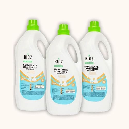 Kit 3X: Amaciante Conforto Biodegradável BioZ Green 3L Amaciante Conforto Biodegradável BioZ Green 3L possui fórmula natural, elaborado com os melhores ingredientes e o poder dos óleos essenciais Permite um toque suave e macio nas suas roupas, promovendo um perfume duradouro adocicado com toques de baunilha.