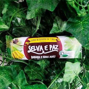 A Barra de Frutas Banana da Terra Orgânica Selva e Paz é feita de fatias de banana da terra desidratadas e prensadas. Além de ser uma experiencia única, ela é versátil para comer em qualquer hora e lugar.