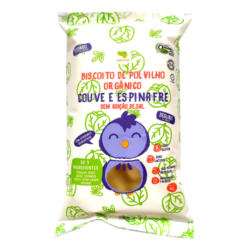 O Biscoito de Polvilho Couve e Espinafre Vegano Orgânico Crilancha é feito de ingredientes orgânicos, veganos, sem adição de sal, livres de conservantes e seguros para alérgicos. O Biscoito de Polvilho Couve e Espinafre Vegano Orgânico Crilancha é uma versão especial para os babys a partir de 6 meses. Produzido sem adição de sal, leva apenas 5 ingredientes. Ingredientes: Polvilho azedo orgânico, couve orgânica, espinafre orgânico, azeite extra virgem orgânico e orégano orgânico. NÃO CONTÉM GLÚTEN. Sobre a marca: Em busca de um alimento gostoso, nutritivo e que converse com as crianças, surgiu a Crilancha. Somos um biscoito de polvilho inclusivo, ou seja, 100% seguro para todas as crianças, sejam elas livre de alergias alimentares, alérgicas ou com restrições alimentares. Um mundo lúdico e gostoso a cada pacote de Crilancha Sobre a Boomi: A Boomi é um mercado online com produtos saudáveis e sustentáveis, que fazem bem à saúde e ao planeta. São mais de 1.800 produtos de 100 pequenas marcas para você! Nascemos pequenos, mas com um propósito gigante: conectar pessoas a produtos acessíveis que tragam benefícios para a saúde, para o planeta e para a sociedade. Para isso, buscamos ofertar produtos de pequenos agricultores e pequenas empresas em um mundo cada vez mais veloz e que busca mais produtividade. Vamos sempre buscar levar o melhor para você! Nosso propósito é conectar alimentos saudáveis e produtos naturais e sustentáveis a pessoas preocupadas com a sua saúde e com a saúde do planeta. Com preço justo, comodidade e informações confiáveis. Curadoria: Nossos produtos são criteriosamente validados pela nossa curadoria de produtos saudáveis, que busca produtores e empresas que compartilham do nosso alto padrão de qualidade. Da enorme lista de ingredientes banidos à preocupação do bem estar animal, desde o primeiro dia seguimos fieis aos nossos valores, trabalhando com transparência e práticas sustentáveis. Vendemos apenas produtos que admiramos e que nos orgulha.