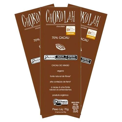 Kit 3x: chocolate 70% cacau com açúcar demerara orgânico chokolah 70g