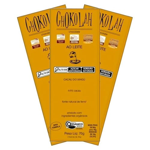 Kit 3x: chocolate ao leite 44% cacau com açúcar demerara orgânico chokolah 70g