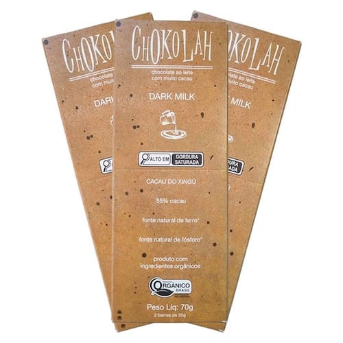 Kit 3x: chocolate dark milk 55% cacau com açúcar demerara orgânico chokolah 70g