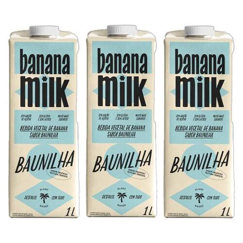 Kit 3X: Leite Vegetal Banana Sabor Baunilha Banana Milk 1L