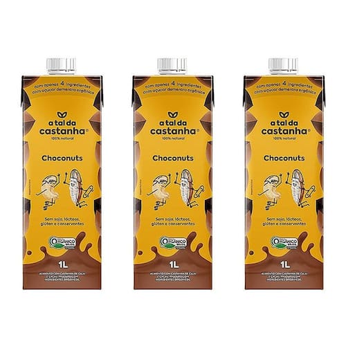 Kit 3x: leite vegetal choconuts orgânico a tal da castanha 1l O leite vegetal choconuts a tal da castanha é a versão para quem ama chocolate totalmente natural, vegetal e sem aditivos.